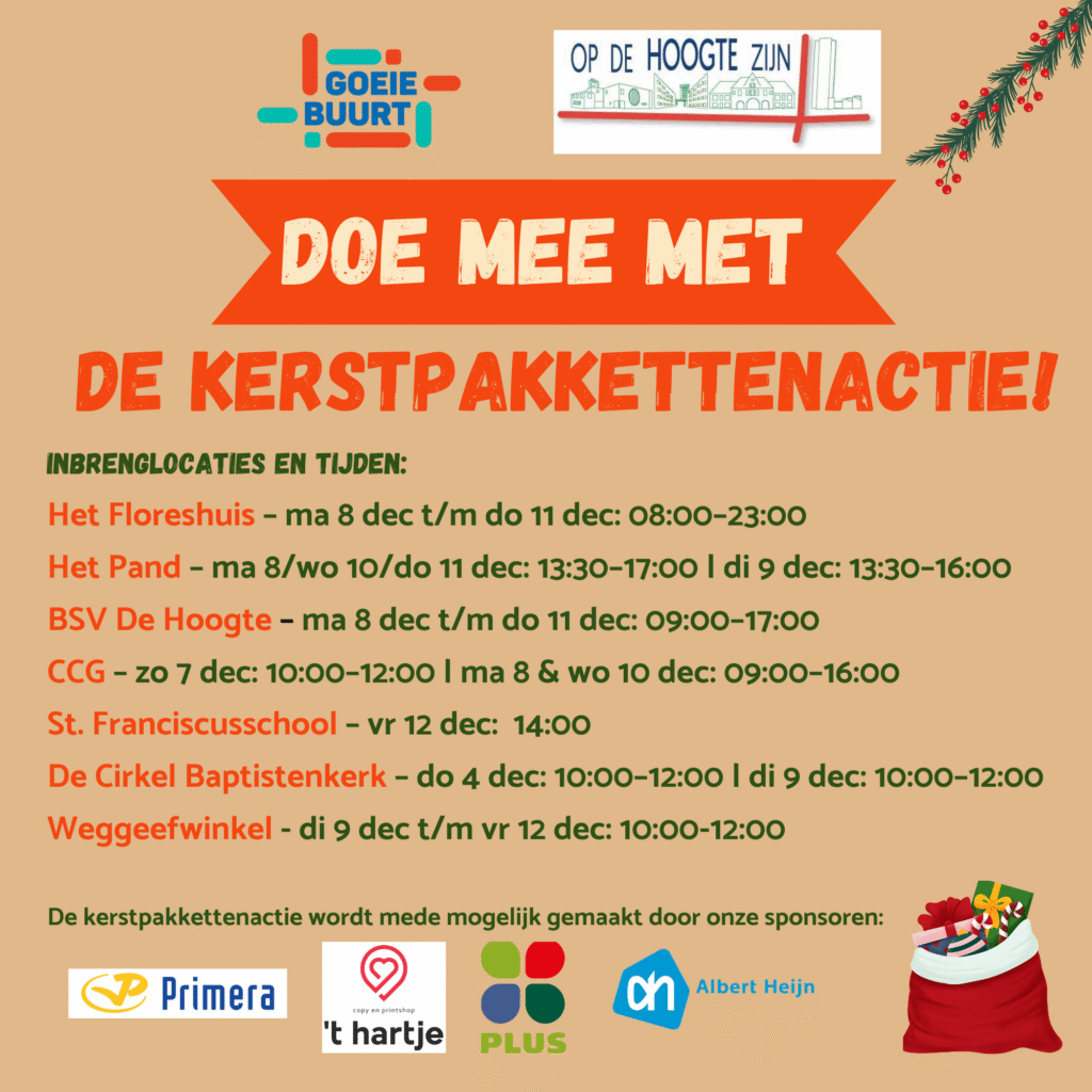 De kerstpakketactie wordt mogelijk gemaakt door GoeieBuurt en Bewonersplatform De Hoogte.